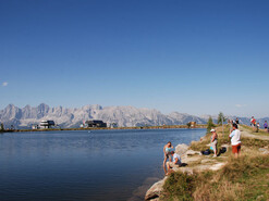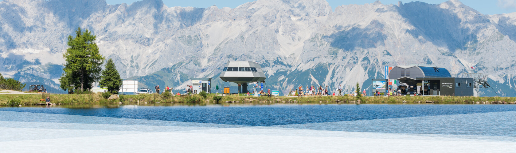 - Loop trail passing by Spiegelsee (Mirror Lake) with reflections of the Dachstein mountains